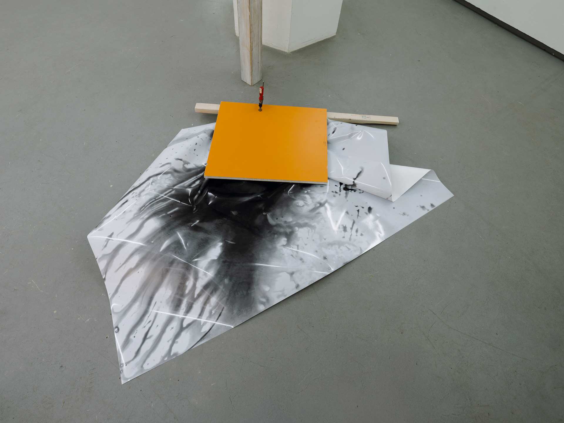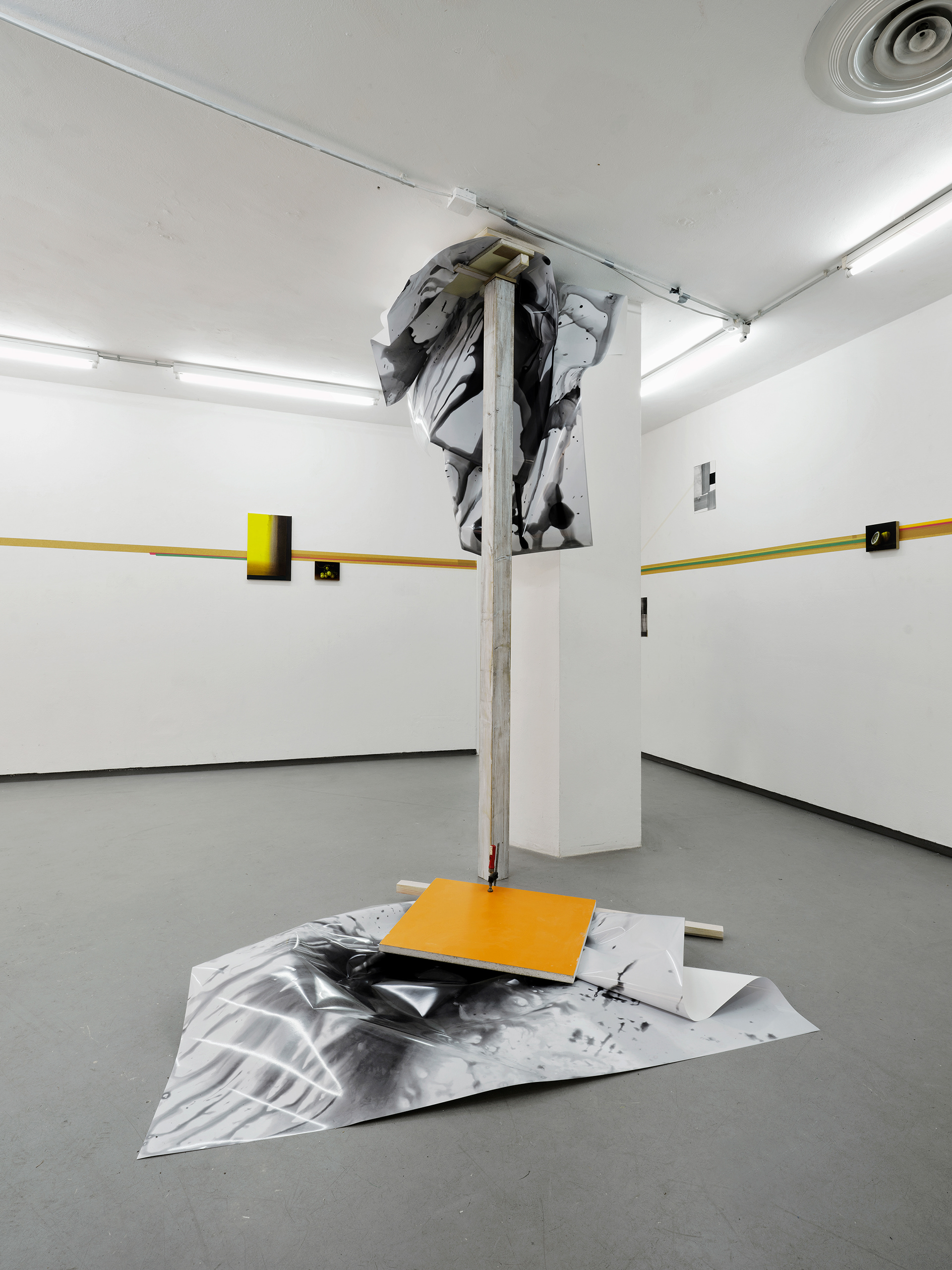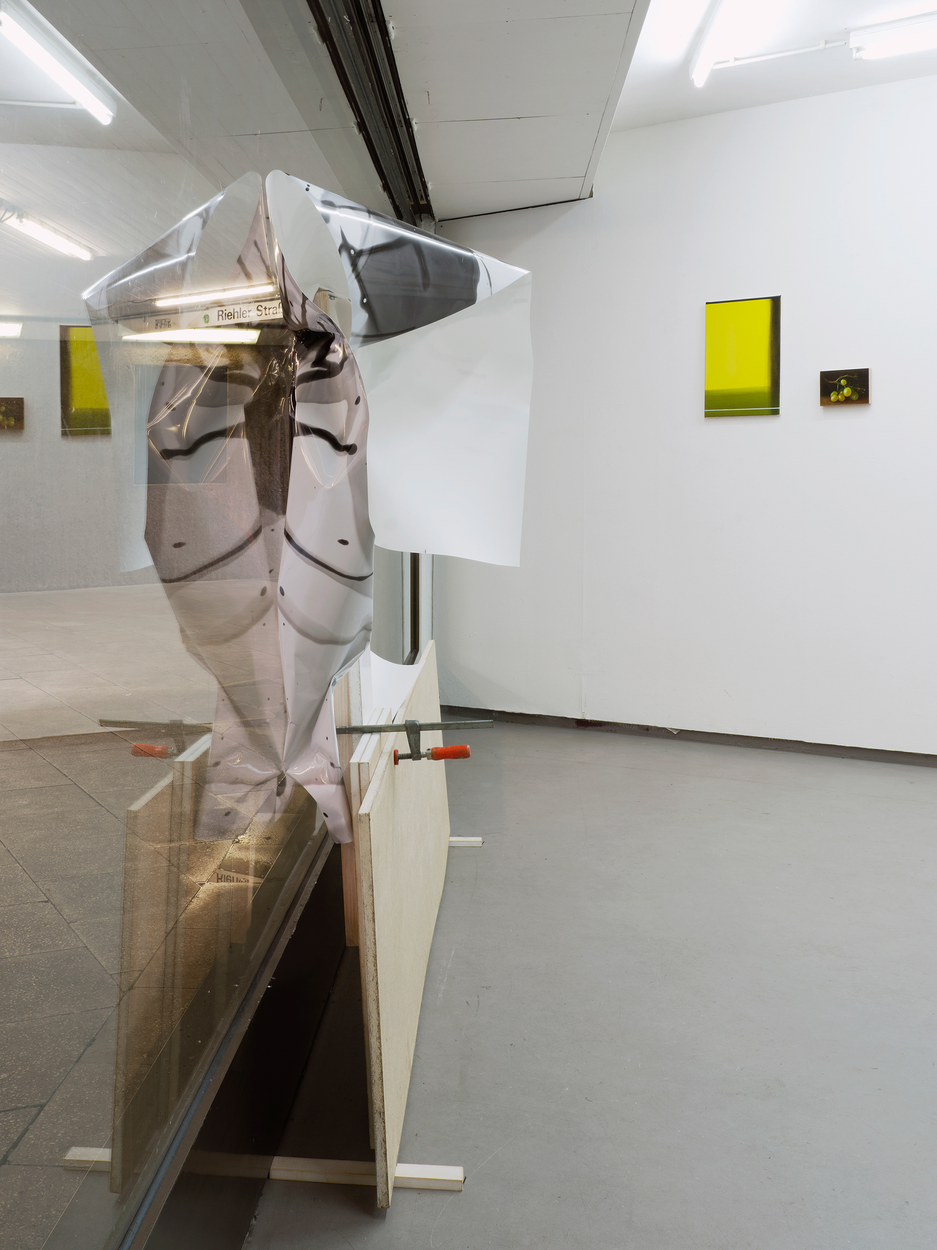 2024, Fotoinstallation, 3-teilig 4 s/w-Fotografien, je 159 x 112 cm, Schrauben, Schraubzwingen, Holz. Labor, Projektgalerie, Köln, zusammen mit Friedhelm Falke (Malerei)