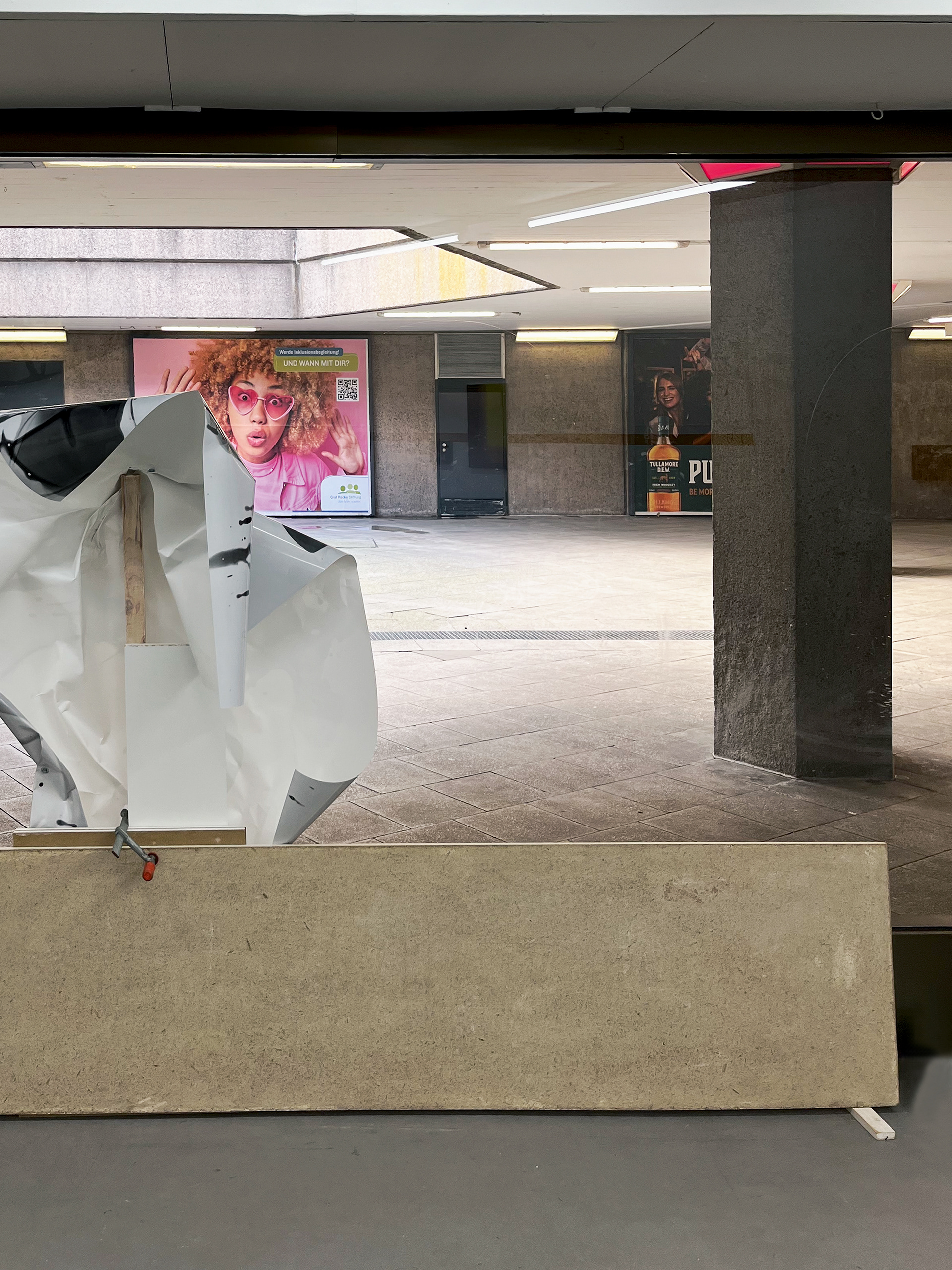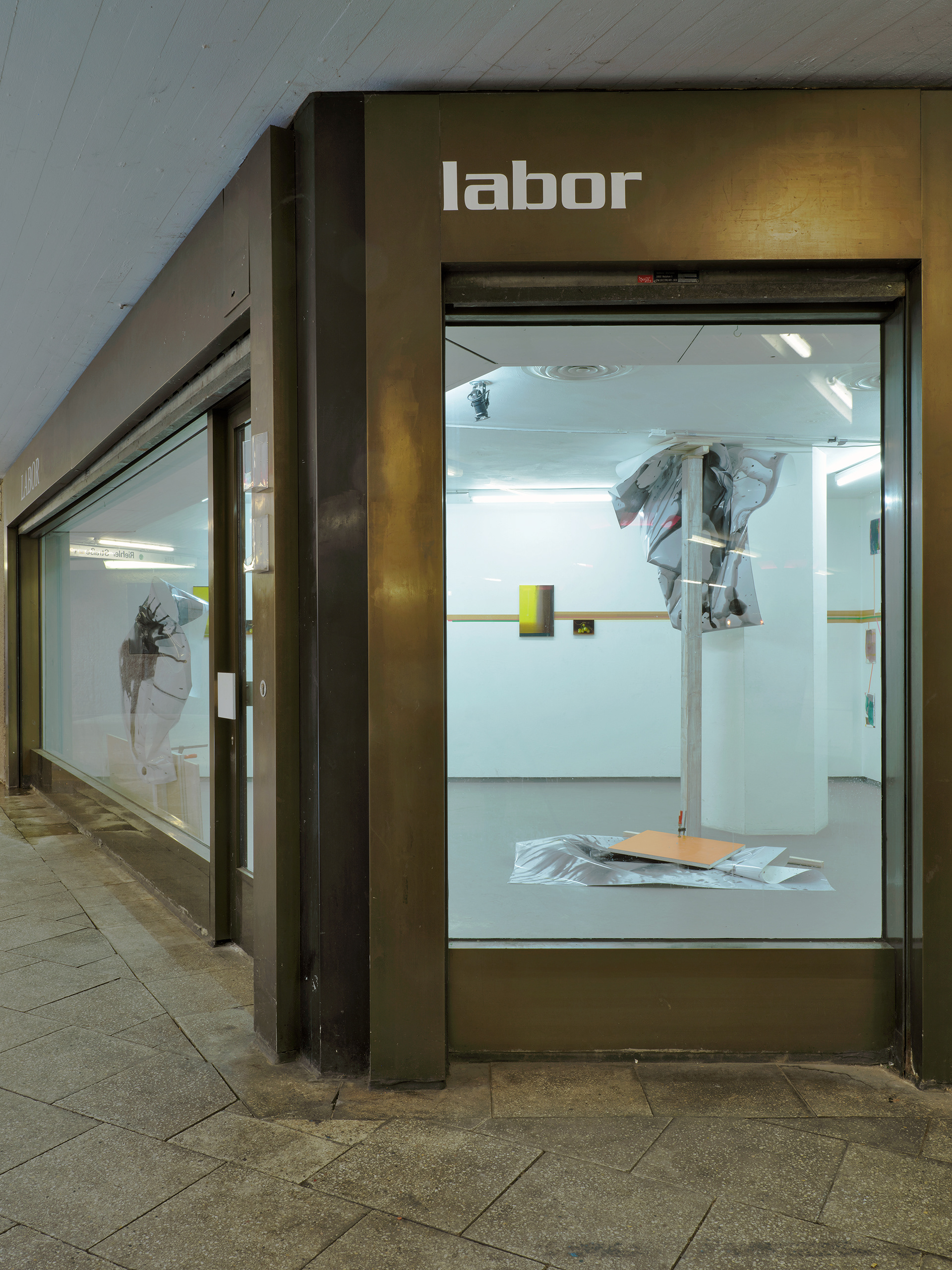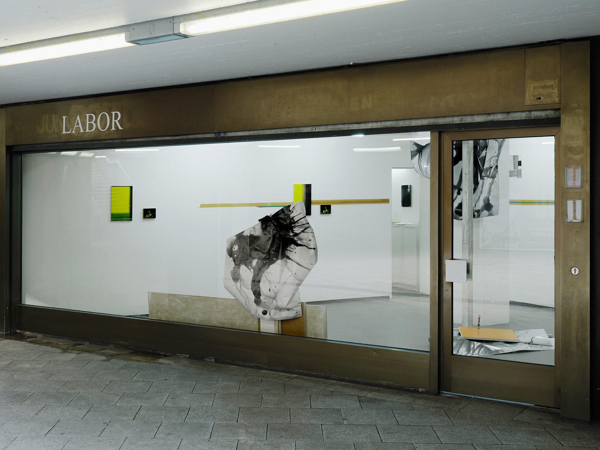 2024, Fotoinstallation, 3-teilig 4 s/w-Fotografien, je 159 x 112 cm, Schrauben, Schraubzwingen, Holz. Labor, Projektgalerie, Köln, zusammen mit Friedhelm Falke (Malerei)